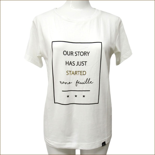 レディース 英字 Tシャツ M 9号 02オフホワイト 258558 Nano Feuille ナノフィーユ メール便は送料無料♪